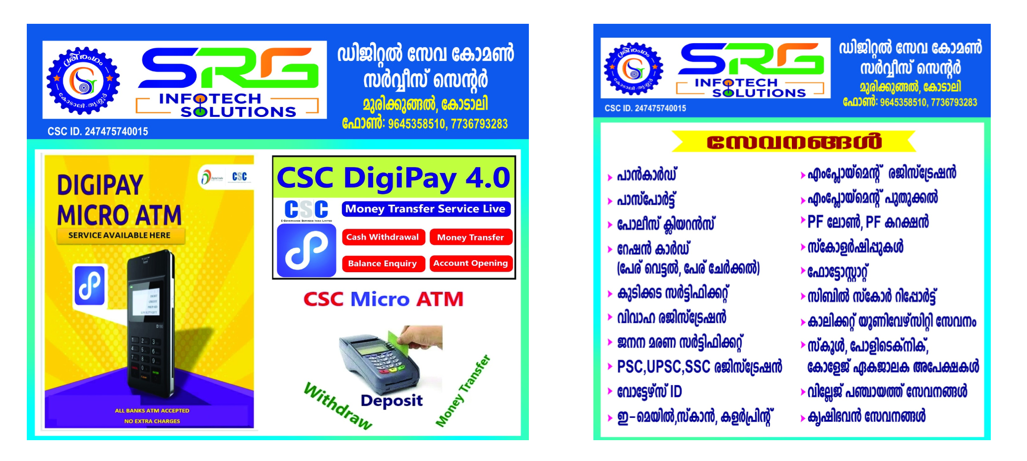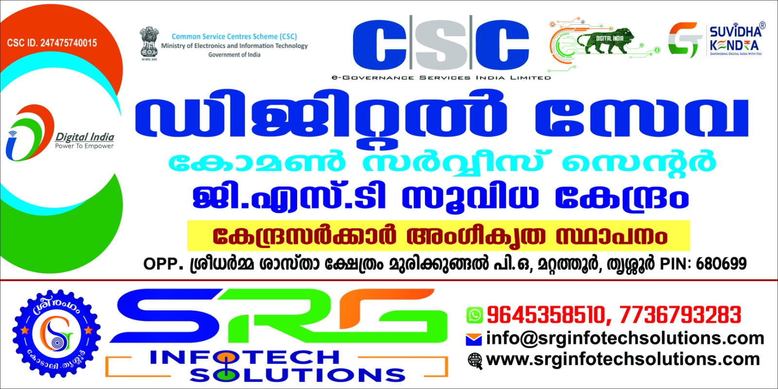 Welcome to SRGIS CSC,Murikkungal. We provide consulting in E- Governance and GST Suvidha Services. We are engaged in Admission Services,Income Tax, Accounting, Audit, BEVCO, Online Payment Services and More
